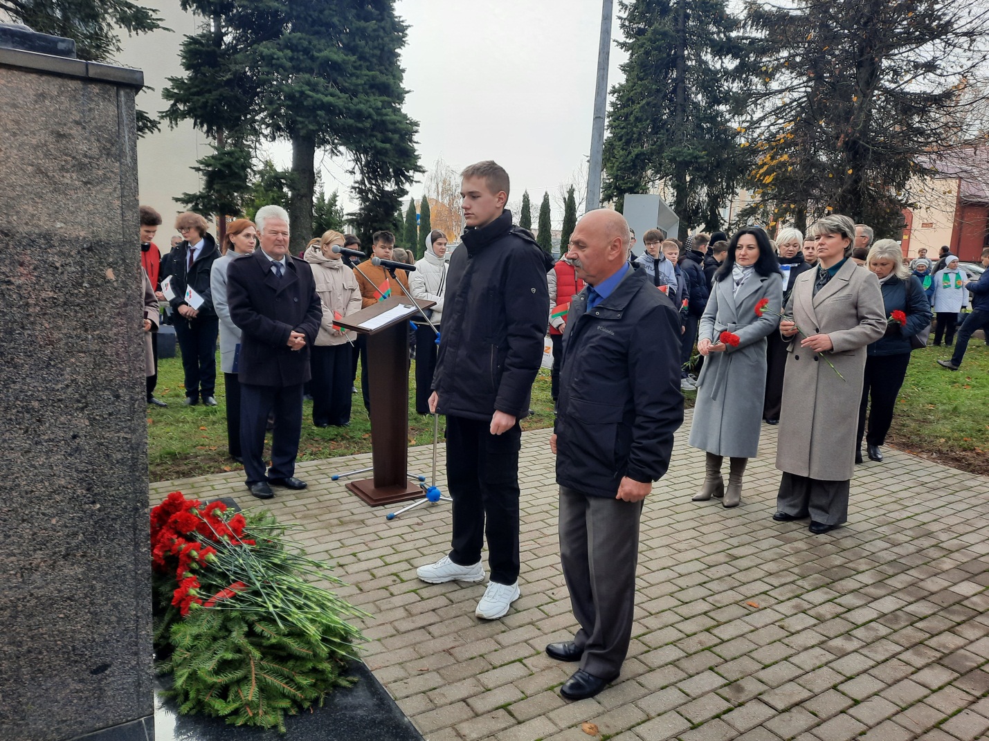 Затем прошла церемония возложения цветов к памятнику, в которой приняли участие члены районной организации Белорусского союза офицеров полковник запаса Олег Сивец, подполковник запаса внутренней службы Сергей Тимошенко, прапорщик запаса Николай Талейко и др.