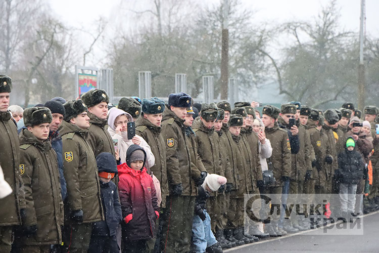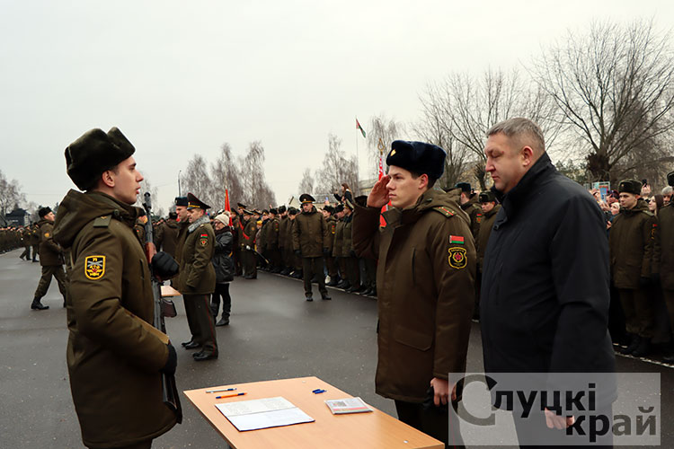 Среди гостей на мероприятии присутствовали заместитель министра Обороны по тылу – начальник тыла Вооруженных Сил Республики Беларусь генерал-майора Андрей Бурдыко, председатель Слуцкого райисполкома Владимир Гога, военный комиссар Слуцкого и Стародорожского районов Юрий Пигулевский, представители Слуцкой ООС ДОСААФ, родные и близкие военнослужащих, которые поздравили новобранцев с важным этапом их жизни – принятием присяги…