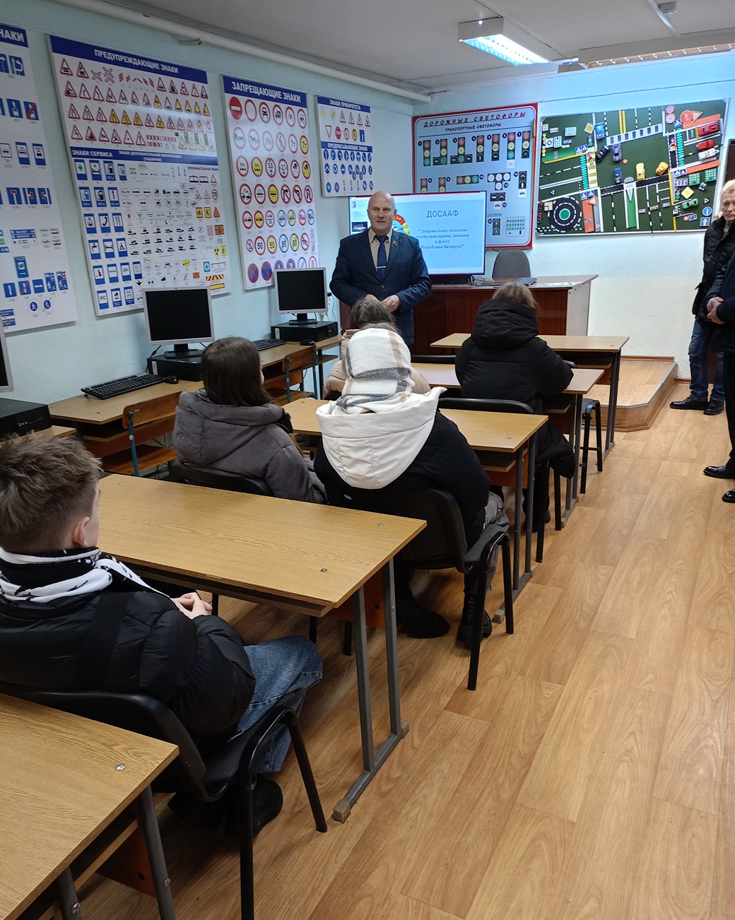 Специалист по патриотическому воспитанию и кадровой работе ознакомила с историей создания ДОСААФ, председатель Раманаускас Витаутас Станиславович рассказал о деятельности оргструктуры, продемонстрирован фильм о ДОСААФ.