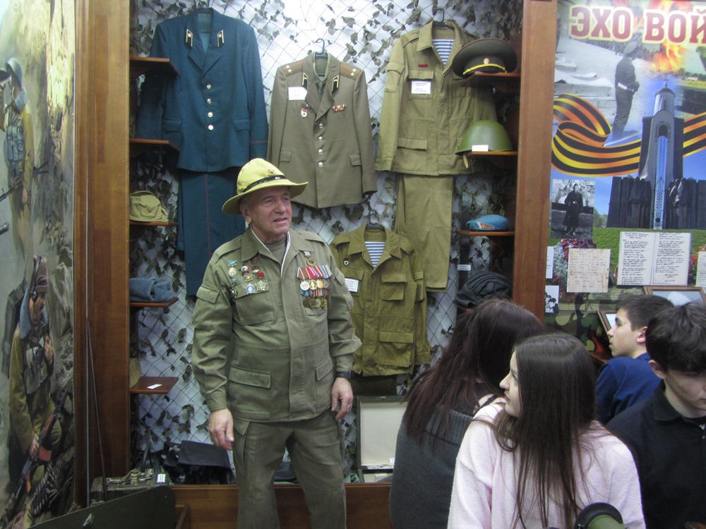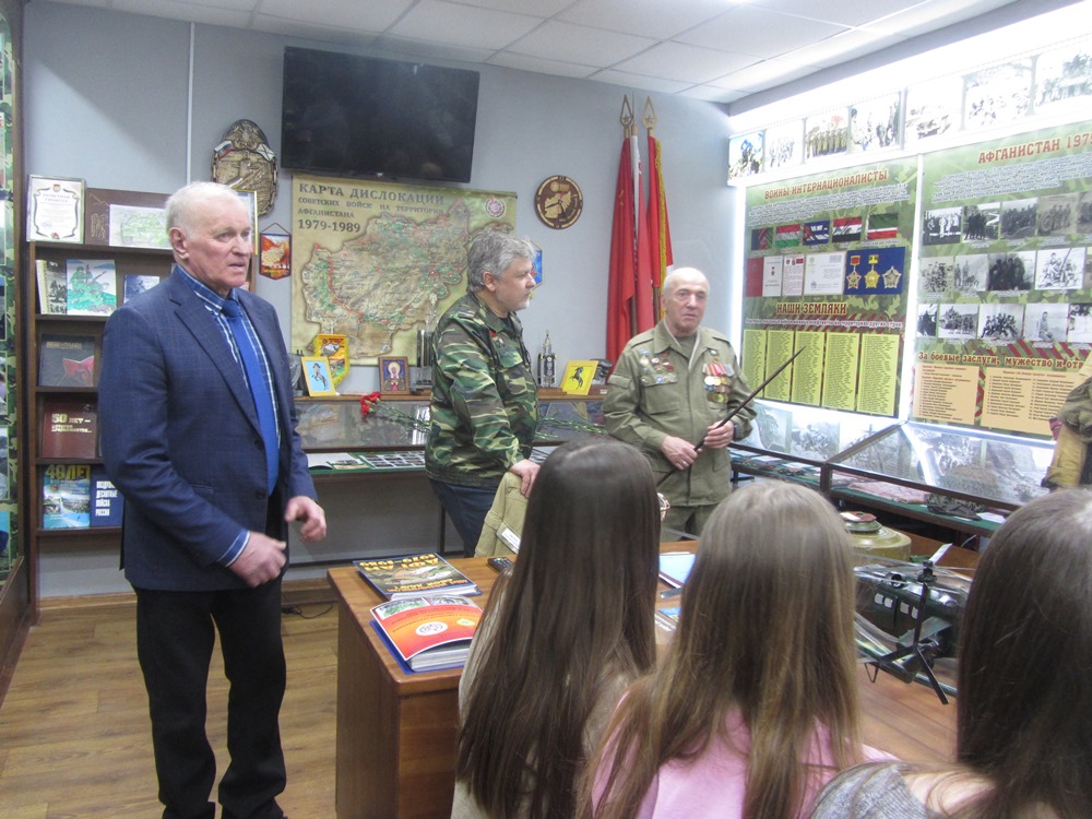 С нескрываемым интересом ребята рассматривали все экспонаты музея. Вместе с «афганцами» рассуждали о долге, чести воинов-интернационалистов, вспоминали о своих земляках, которые несли службу в Афганистане.