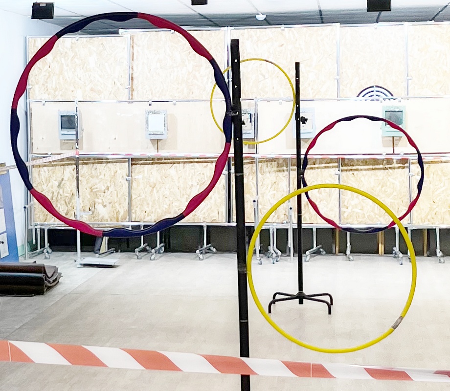 На трассе, сооруженной в тире Московской РОС ДОСААФ начинающие спортсмены посоревновались в скоростном маневрировании на БПЛА.