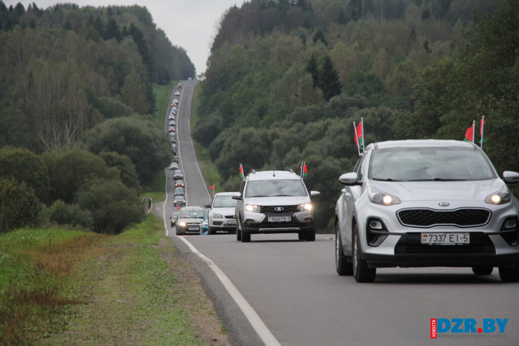 Колонна автомобилей под белорусскими флагами прошла по знаковым местам района, совершив настоящий марш-бросок по страницам истории, чтобы еще раз вспомнить героическое прошлое и подчеркнуть неразрывную связь поколений.