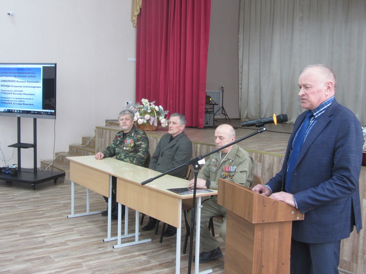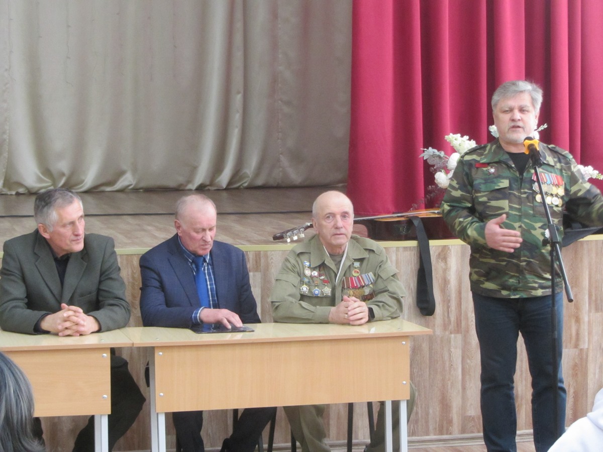 «Афганцы» рассказали учащимся о службе в армии, о войне 1979-1989 гг. в республике Афганистан, о героических подвигах солдат. Беседа была направлена на уважительное отношение к историческому прошлому, о памяти тех, кто погиб на поле боя ради нашего благополучия.
