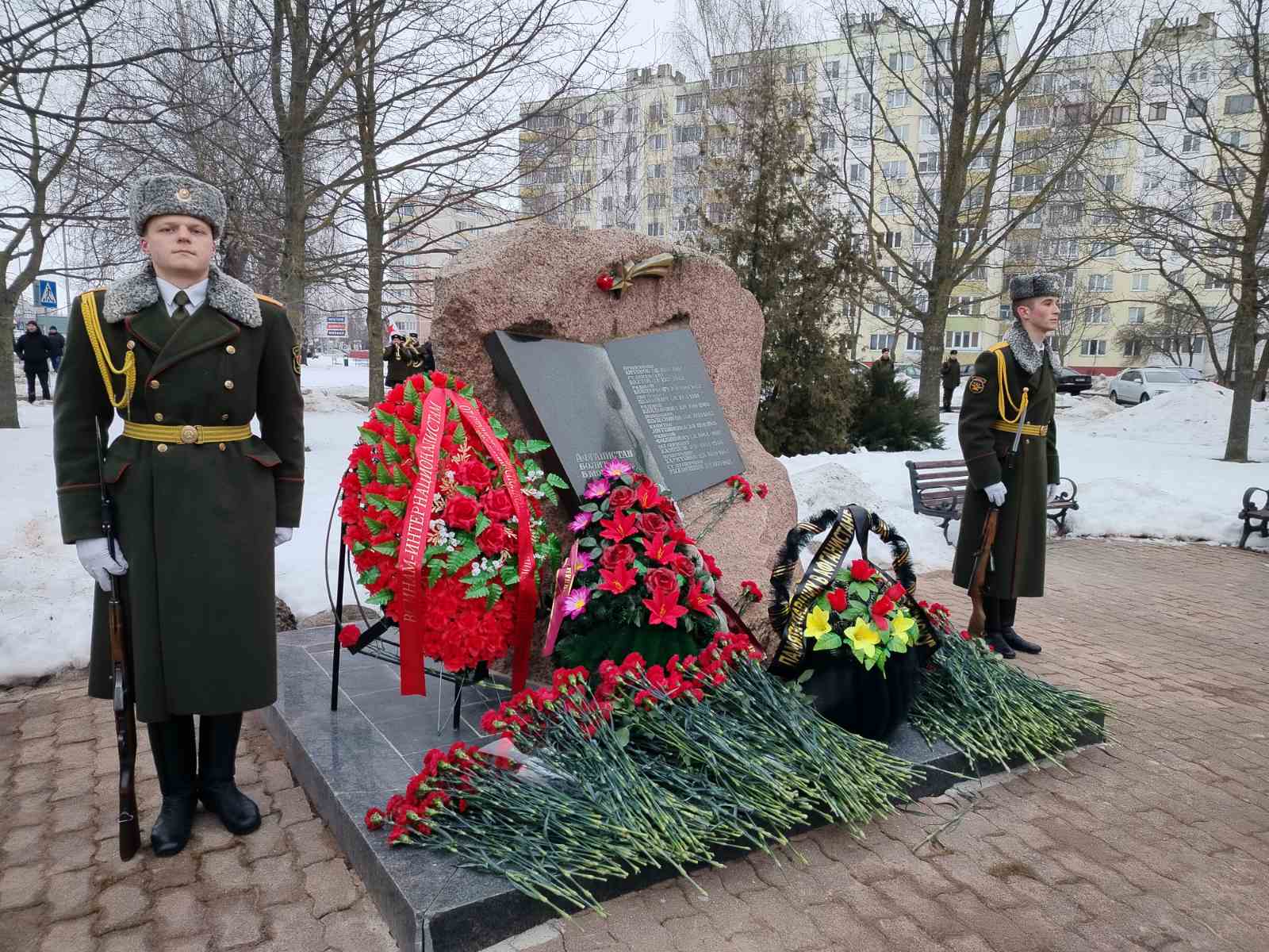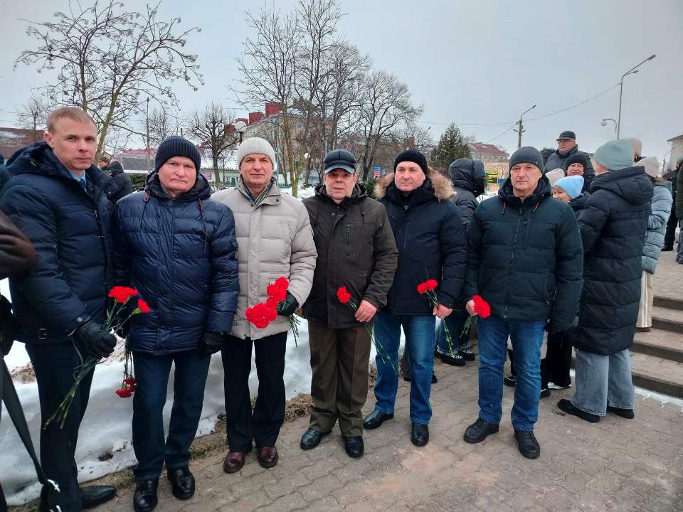 15 февраля 2026 года председатель Слуцкой ООС ДОСААФ Овсянников В.И., воины-интернационалисты - старший мастер ПОУ МТС Бачко Н.М., председатель первичной оргструктуры ДОСААФ ГУО «Средняя школа № 13 г. Слуцка» Мирончик С.А., представители оборонного Общества совместно с общественностью и руководством Слуцкого района приняли участие в митинге-памяти, возложении цветов к памятному знаку воинам-афганцам.