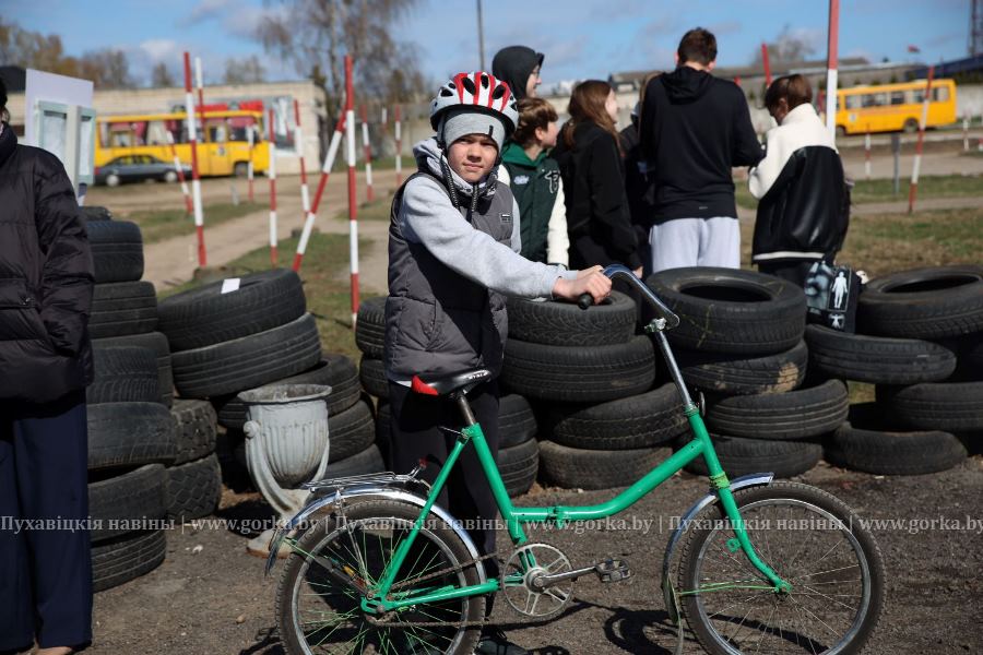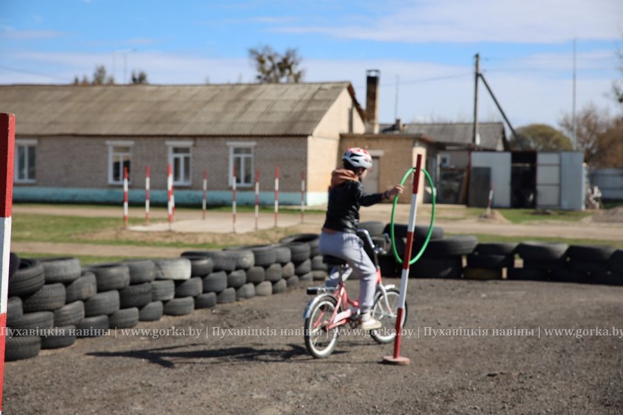 Фигурное вождение велосипеда на автодроме Пуховичской РОС ДОСААФ.