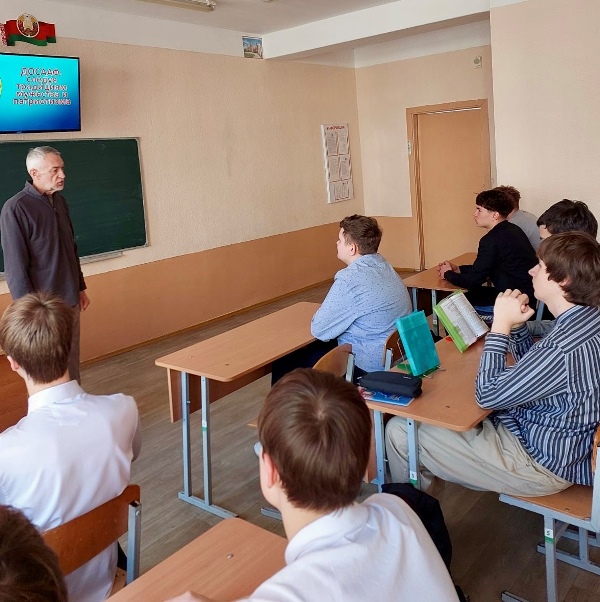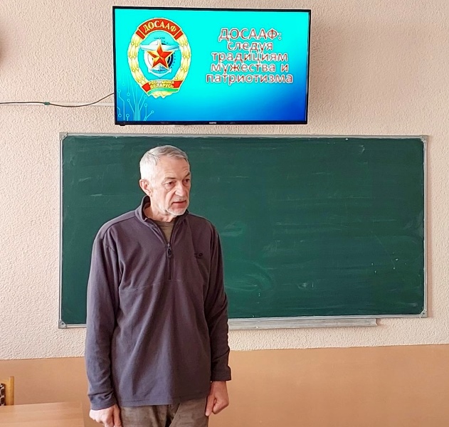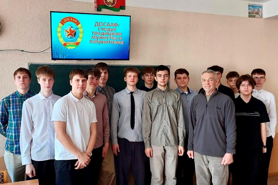 Представитель ДОСААФ Александр Миронов, прибывший в этот день в школу, рассказал о героических поступках выпускников курсов ОСОАВИАХИМ (ДОСААФ) в годы войны. Старшеклассники узнали об отважной работе белорусской молодежи, юношах и девушках их возраста, привлеченных к разминированию и ликвидации взрывоопасных предметов в послевоенный период. Прозвучали имена белорусов героев афганской войны Николая Чепика и Василия Щербакова, летчика Владимира Корвата, первого Героя Беларуси, совершившего подвиг в мирное время.