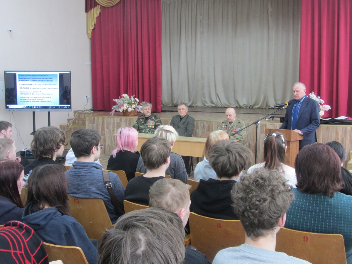 В преддверии 37-й годовщины вывода советских войск из Афганистана, которая ежегодно отмечается 15 февраля, в УО «Ильянский государственный аграрный колледж» прошла незабываемая встреча, символизирующая уважение и признание подвига воинов-интернационалистов.