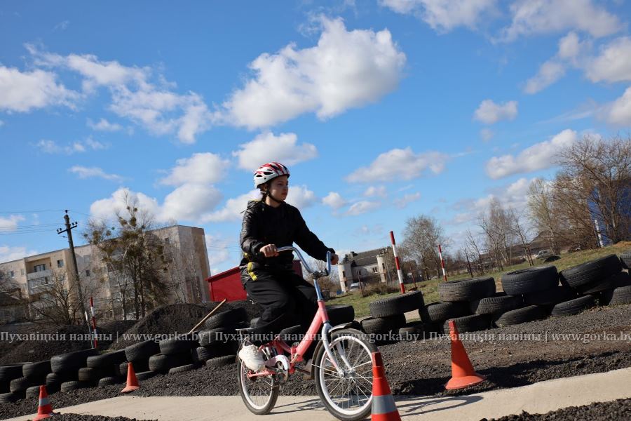 Фигурное вождение велосипеда на автодроме Пуховичской РОС ДОСААФ.